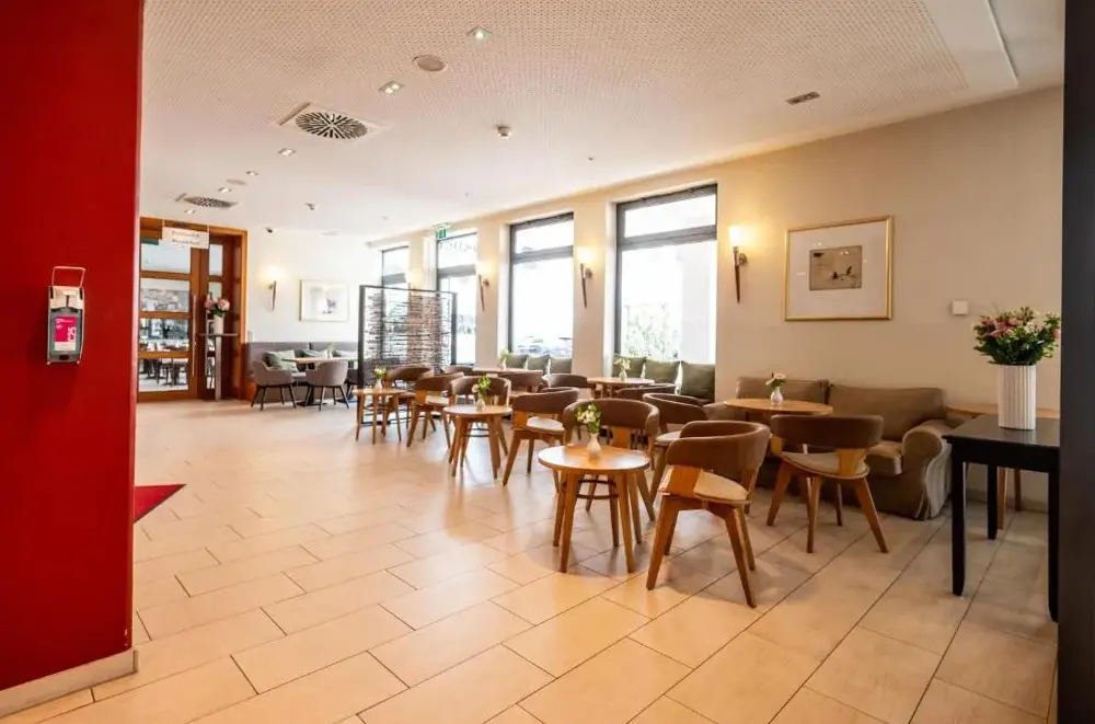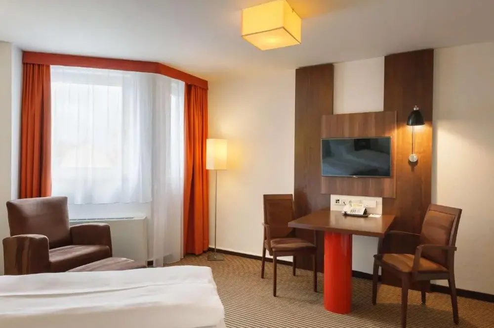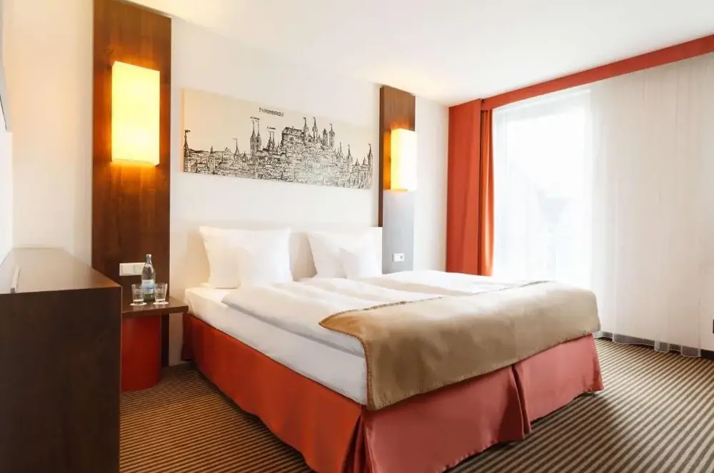 O Best Western Hotel Nürnberg City West é um estabelecimento de três estrelas situado em Reigerstraße 6, Weststadt, próximo a pontos turísticos importantes como a Casa de Albrecht Dürer e o Museu de Brinquedo. O hotel oferece quartos amplios com decoração moderna em tons de vermelho e marrom, equipados com ar-condicionado, televisão de tela plana e canais via satélite. Cada quarto possui banheiro privativo, mesa e acesso a serviços como café da manhã completo e chás/café gratuitos 24 horas. Localizado a 50 metros da estação subterrânea Eberhardshof, o hotel facilita o acesso ao centro histórico de Nuremberg e outras áreas da cidade. Além disso, há uma variedade de opções gastronômicas próximas, incluindo o bar Regerbar. Serviços como estacionamento próprio, elevador e internet gratuita estão disponíveis.